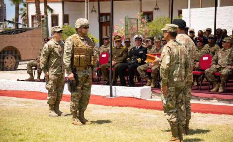 El patio de honor del Cuartel General de la VI División del Ejército de Chile (VI D.E.) fue el escenario del último día del General Lionel Curti Santibáñez, como Comandante en Jefe de la División de “Los Centinelas del Norte”, luego de entregar el mando al General de Brigada Rubén Castillo Herrera, en emotiva y solemne ceremonia desarrollada este viernes 1 de diciembre.