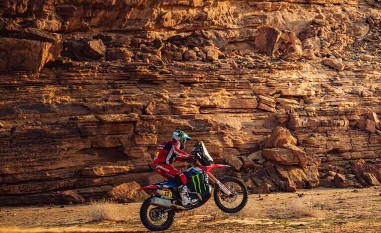 SANTIAGO / AL-HENAKIYAH /ARABIA SAUDITA / 6 de enero de 2024.- Un infierno fue la Etapa 1 para la mayoría de los pilotos de motos que se vieron enfrentados a un centenar de kilómetros de pura roca volcánica que tuvo serias consecuencias para un par de pilotos de punta, donde el iquiqueño José Ignacio Cornejo (Monster Energy Honda) salvó ileso y alcanzó el quinto lugar en los 414 kilómetros de especiales para quedar cuarto en la clasificación general.