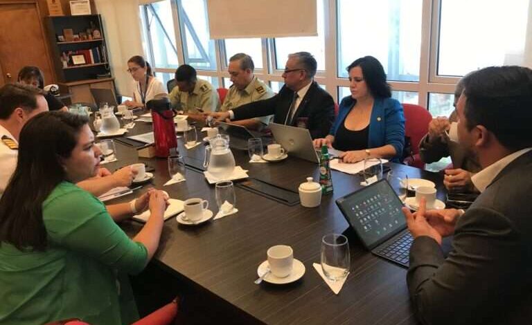 Steinert; la coordinadora regional de la Subsecretaria de Prevención del Delito, Ana María Peralta; el jefe región policial Tarapacá, prefecto Inspector Cristian Lobos; el jefe de la 1ª Zona Carabineros Tarapacá, general Juan Francisco González y el gobernador marítimo, capitán de navío LT Alex Rich Ehrlich.