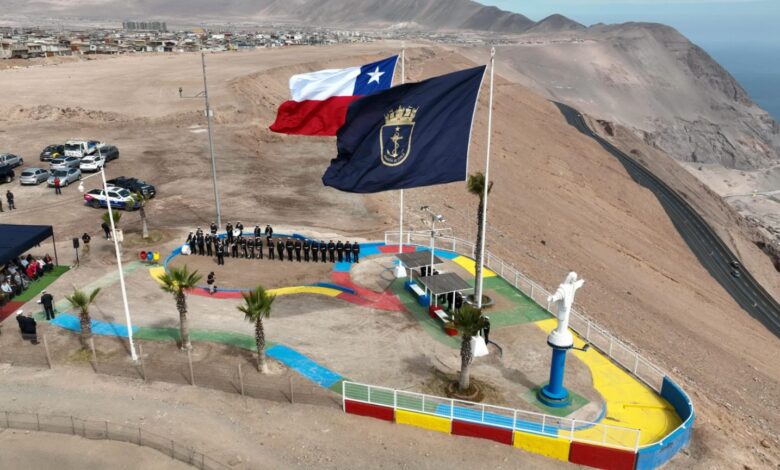 La comuna de Alto Hospicio inició las actividades del Mes del Mar y el aniversario del Combate Naval de Iquique con una ceremonia de izamiento del pabellón patrio y del estandarte de la Armada de Chile en el Mirador de Cristo.