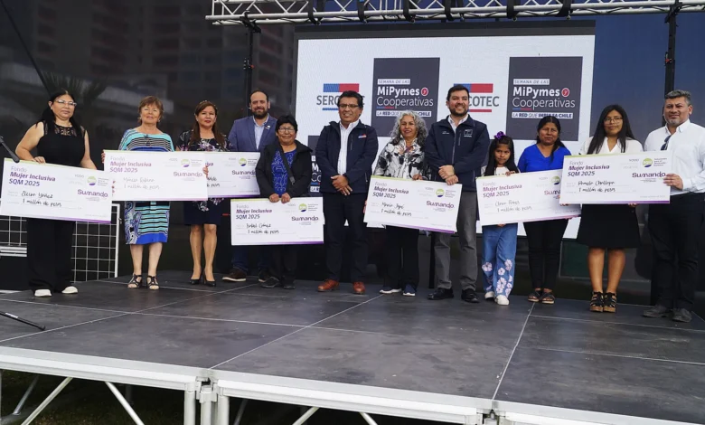 Durante la ceremonia inaugural, se entregaron certificaciones y reconocimientos a expositores y organizaciones, entre ellas la Asociación Gremial Minera de Iquique, beneficiaria del Programa de Fortalecimiento de Cooperativas de SERCOTEC. También se distinguió a empresas locales por su aporte al desarrollo económico y se rindió homenaje al ejecutivo de fomento de esa agencia estatal, Vicente Norambuena, por su destacada trayectoria en apoyo al emprendimiento regional. Asimismo, la empresa SQM Yodo Nutrición Vegetal distinguió a beneficiarias de su programa Mujeres Inclusivas 2025 y les otorgó apoyos económicos. La iniciativa busca fortalecer la autonomía económica y el liderazgo de mujeres mayores de 55 años, destacando el valor de las alianzas público-privadas en la promoción del emprendimiento con impacto social. El rector de la Universidad Arturo Prat (UNAP), Alberto Martínez, también recibió un reconocimiento por el permanente apoyo de la academia al ecosistema emprendedor regional, otorgado por el seremi de Economía.